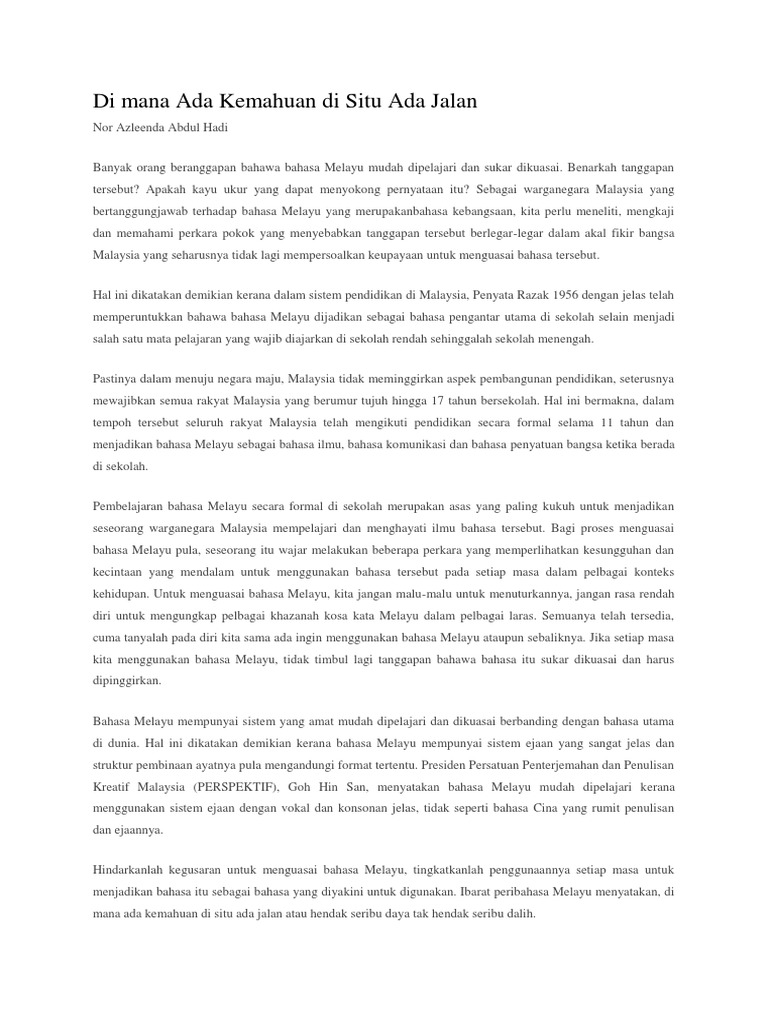 Di Mana Ada Kemahuan Di Situ Ada Jalan Pdf